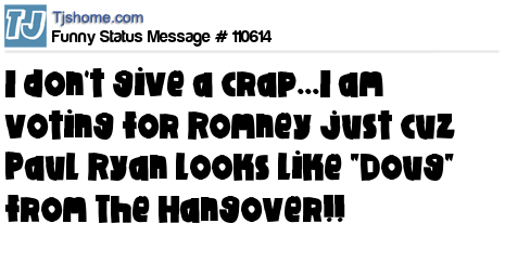 X is I don't give a crap...I am voting for Romney just cuz Paul Ryan looks like "Doug" from The Hangover!!