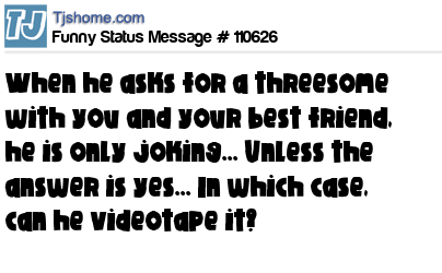 X When he asks for a threesome with you and your best friend, he is only joking... Unless the answer is yes... In which case, can he videotape it?