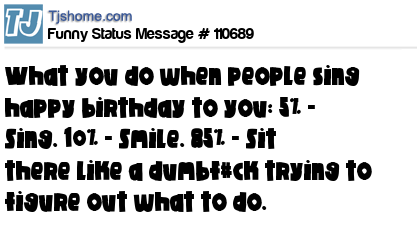X says What you do when people sing happy birthday to you: 5% - Sing. 10% - Smile. 85% - Sit there like a dumbf#ck trying to figure out what to do.