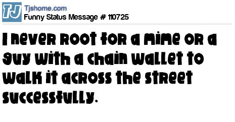 X says I never root for a mime or a guy with a chain wallet to walk it across the street successfully.