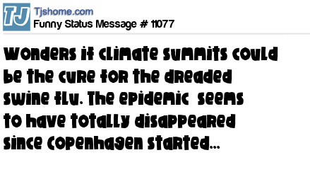 X wonders if climate summits could be the cure for the dreaded swine flu. The epidemic seems to have totally disappeared since Copenhagen started...