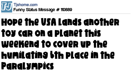 X hope the USA lands another toy car on a planet this weekend to cover up the humilating 6th place in the Paralympics