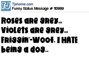 X  Roses are grey,,, Violets are grey,,,  Friggin'-Woof. I HATE being a dog..