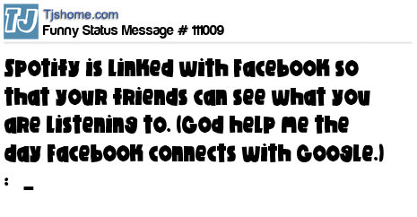 X Spotify is linked with Facebook so that your friends can see what you are listening to. (God help me the day Facebook connects with Google.) : ಠ_ಠ