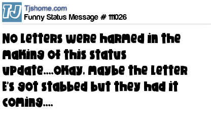 X no letters were harmed in the making of this status update....okay, maybe the letter E's got stabbed but they had it coming....