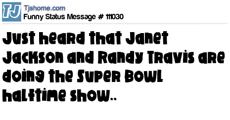 X Just heard that Janet Jackson and Randy Travis are doing the Super Bowl halftime show..