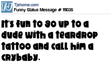 X is It's fun to go up to a dude with a teardrop tattoo and call him a crybaby.