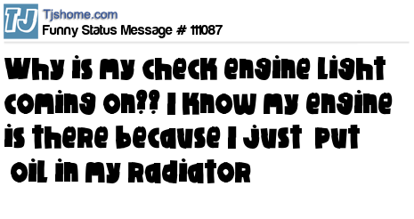 - # 121851 My "check engine" light came on while driving this morning, I looked and the engine is still there...silly light.