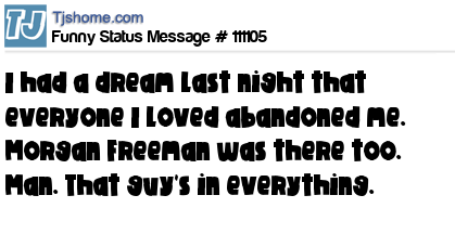 X says I had a dream last night that everyone I loved abandoned me. Morgan Freeman was there too. Man. That guy's in everything.