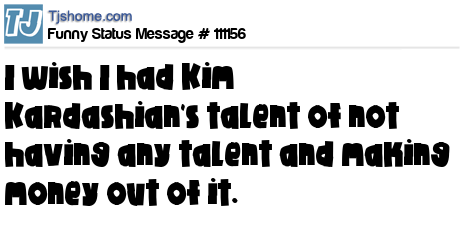 - # 154190 I wish I had kim kardashans talent of not having any talent and making money off it.