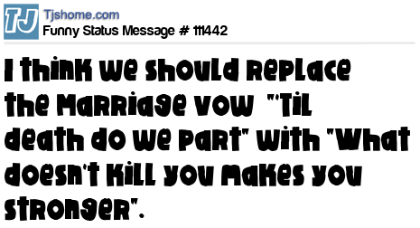 X  I think we should replace the Marriage vow  "`Til death do we part" with "What doesn't kill you makes you stronger".