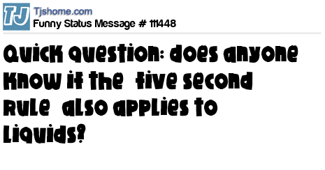 X  Quick question: does anyone know if the “five second rule” also applies to liquids?