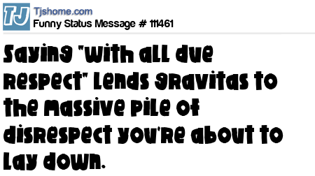 X says Saying "with all due respect" lends gravitas to the massive pile of disrespect you're about to lay down.
