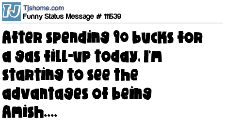 X After spending 90 bucks for a gas fill-up today, I'm starting to see the advantages of being Amish....