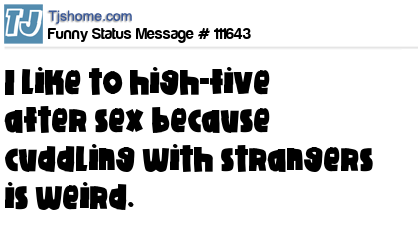 X says I like to high-five after sex because cuddling with strangers is weird.