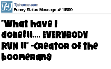 X "What have I done?!!.... EVERYBODY RUN !!" -Creator of the boomerang