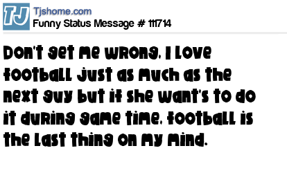 X says Don't get me wrong, I love football just as much as the next guy but if she want's to do it during game time, football is the last thing on my mind.
