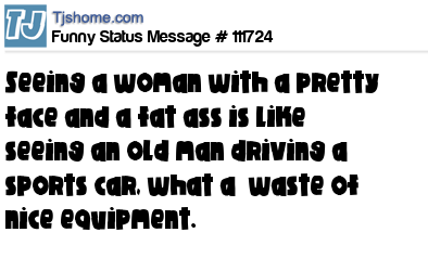 X says Seeing a woman with a pretty face and a fat ass is like seeing an old man driving a sports car, what a waste of nice equipment.