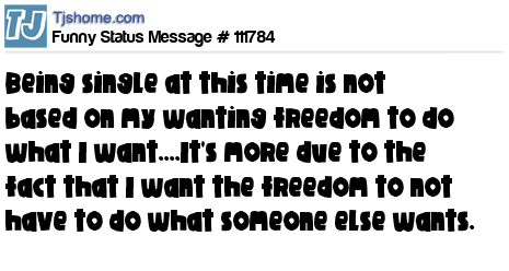 X Being single at this time is not based on my wanting freedom to do what I want....It's more due to the fact that I want the freedom to not have to do what someone else wants.