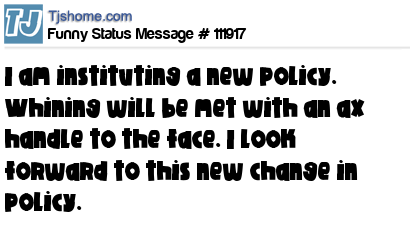 X says I am instituting a new policy. Whining will be met with an ax handle to the face. I look forward to this new change in policy.