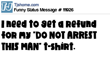 X says I need to get a refund for my "DO NOT ARREST THIS MAN" t-shirt.