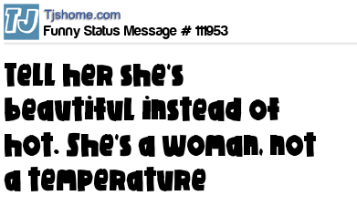 X Tell her she's beautiful instead of hot. She's a woman, not a temperature