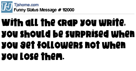 X says With all the crap you write, you should be surprised when you get followers not when you lose them.