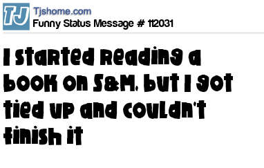 X is I started reading a book on S&M, but I got tied up and couldn't finish it