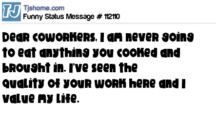 X Dear coworkers, I am never going to eat anything you cooked and brought in. I've seen the quality of your work here and I value my life.