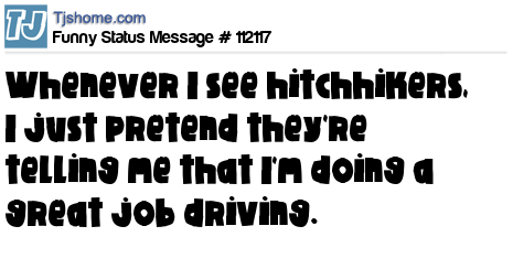 X Whenever I see hitchhikers, I just pretend they're telling me that I'm doing a great job driving.
