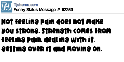 X says Not feeling pain does not make you strong. Strength comes from feeling pain, dealing with it, getting over it and moving on.