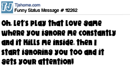 X says Oh, let's play that love game where you ignore me constantly and it kills me inside, then I start ignoring you too and it gets your attention!