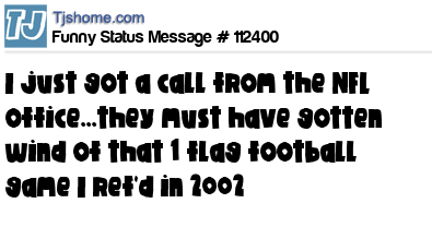 X I just got a call from the NFL office...they must have gotten wind of that 1 flag football game I ref'd in 2002