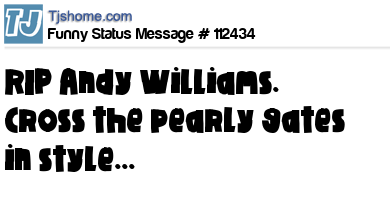 X says RIP Andy Williams. Cross the pearly gates in style...