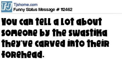 X is You can tell a lot about someone by the swastika they've carved into their forehead.
