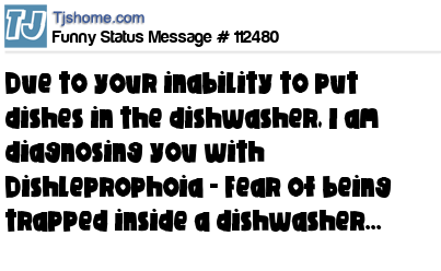 X says Due to your inability to put dishes in the dishwasher, I am diagnosing you with Dishleprophoia - Fear of being trapped inside a dishwasher...