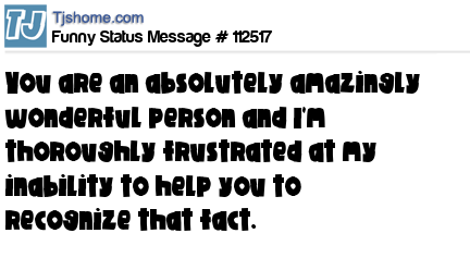 X says You are an absolutely amazingly wonderful person and I'm thoroughly frustrated at my inability to help you to recognize that fact.