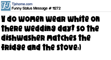 - # 46513 My son asked why women wear white at weddings. I said "Its always better if the dishwasher matches the stove and refrigerator. "