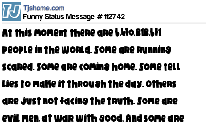 X is At this moment there are 6,470,818,671 people in the world. Some are running scared. Some are coming home. Some tell lies to make it through the day. Others are just not facing the truth. Some are evil men, at war with good. And some are good, struggling
