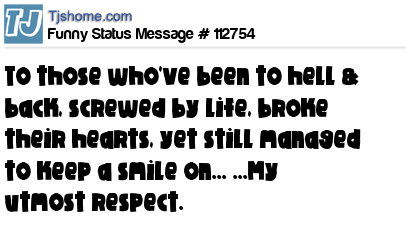 X says To those who've been to hell & back, screwed by life, broke their hearts, yet still managed to keep a smile on... ...My utmost respect.