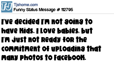 X I've decided I'm not going to have kids. I love babies, but I'm just not ready for the commitment of uploading that many photos to Facebook.