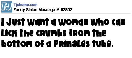X says I just want a woman who can lick the crumbs from the bottom of a Pringles tube.