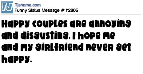 X says Happy couples are annoying and disgusting, I hope me and my girlfriend never get happy.