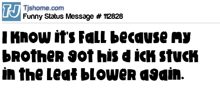X says I know it's Fall because my brother got his d ick stuck in the leaf blower again.