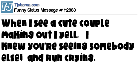 X When I see a cute couple making out I yell, ” I knew you're seeing somebody else!” and run crying.