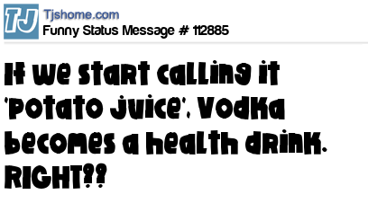 X If we start calling it 'potato juice', Vodka becomes a health drink. RIGHT??