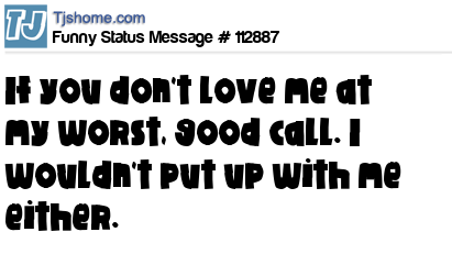 X says If you don't love me at my worst, good call. I wouldn't put up with me either.