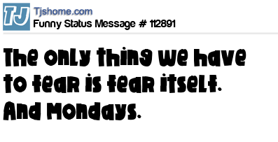 - # 130657 The only thing to fear is fear itself. Also: -Zombies. -Velociraptors. -Unwanted pregnancy. -The Hamburglar. -Spiders. -Madonna's arms.