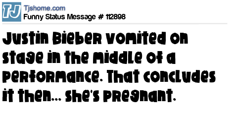 - # 112957 Justin Bieber puked on stage. It was the best thing to ever come out of his mouth in a concert.