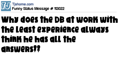 X says Why does the DB at work with the least experience always think he has all the answers??